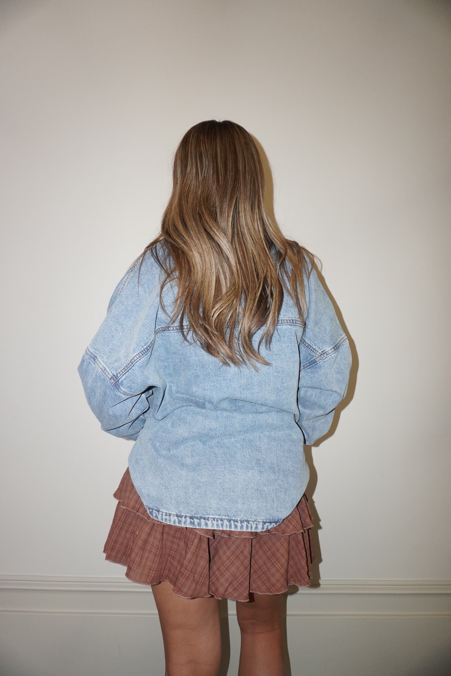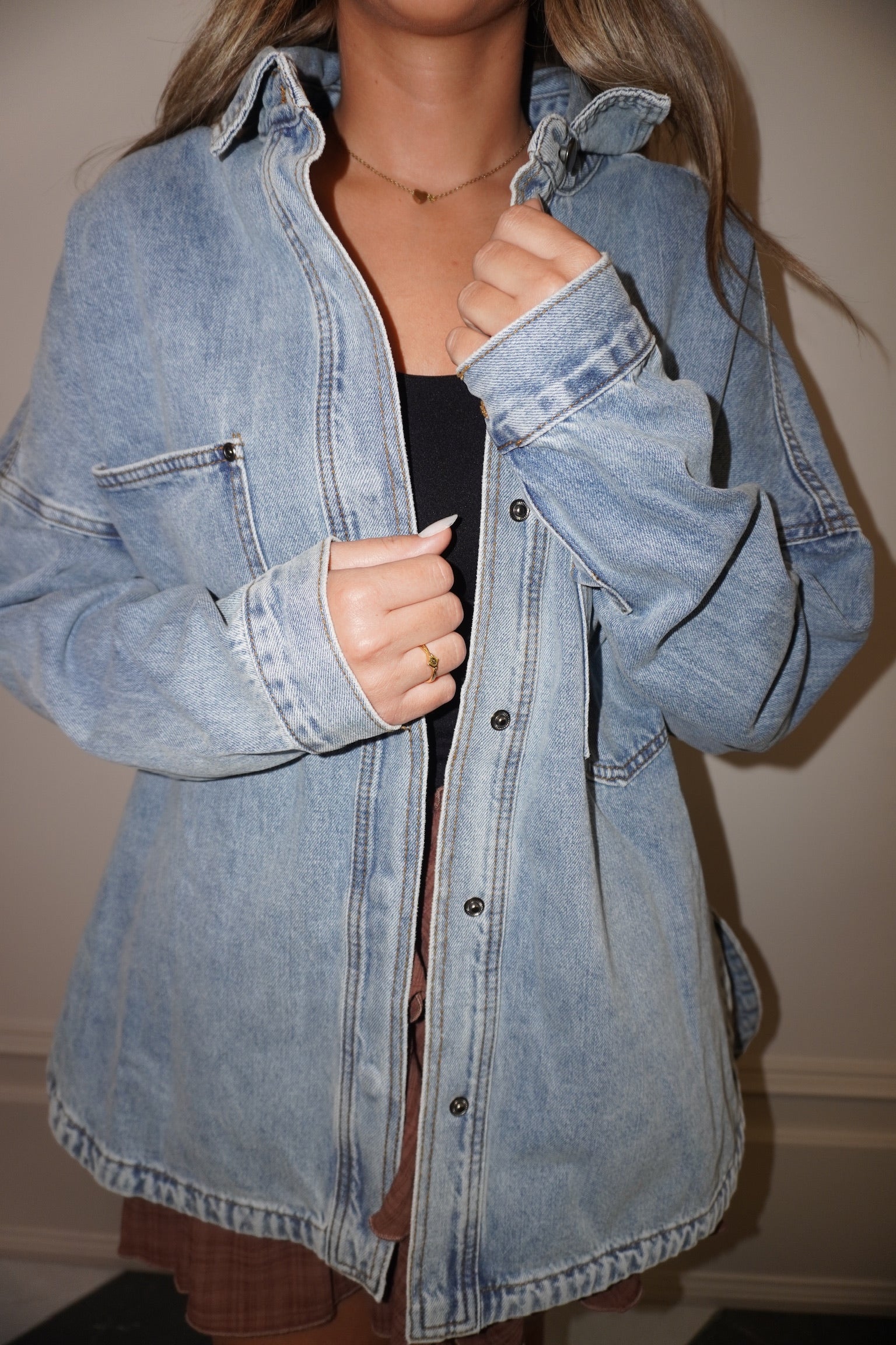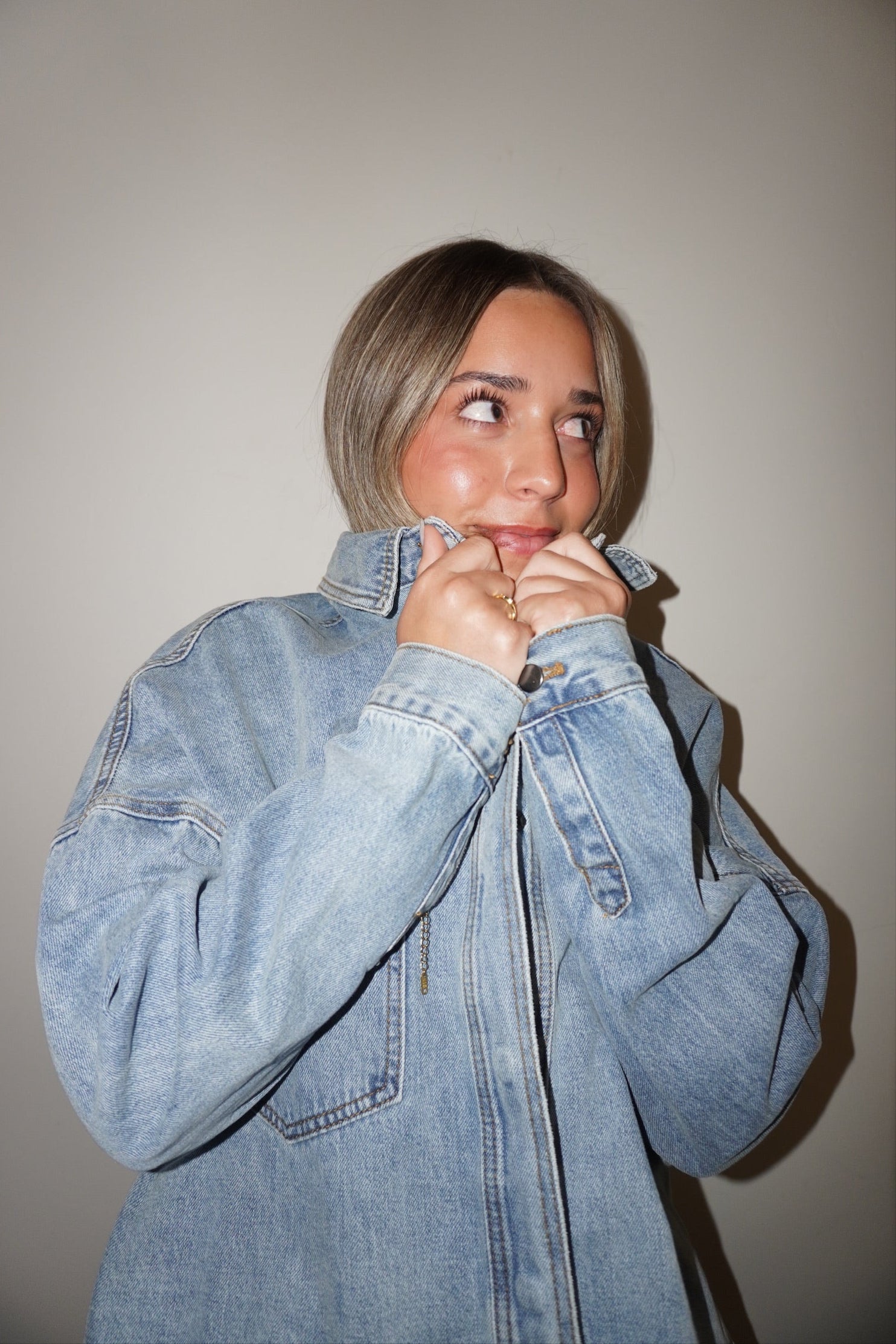 Western Edge, City Cool 💥 This isn’t just a denim jacket—it’s the jacket. With a medium wash that pairs with everything, classic front pockets, and side cut details that add just the right amount of sass, this piece is equal parts timeless and bold. It’s giving rodeo rebel and we’re here for it. Toss it over a sundress for a "sweet but don’t mess with me" vibe, or pair it with leather and boots for a full-on denim outlaw moment. The side cut? Just enough unexpected to keep ‘em guessing. Trust us, your closet’s been waiting for this one!