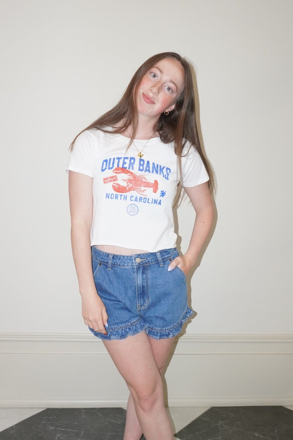 Cue the boat, grab a surfboard, and maybe dodge a few treasure maps—this one’s for the real ones. The Pretty Pogue Baby Tee brings major Pogue life energy with its laid-back fit and beachy graphic. Cropped to perfection and soft enough to live in, it’s the tee you’ll reach for whether you’re chasing waves or just watching reruns of your favorite island drama.