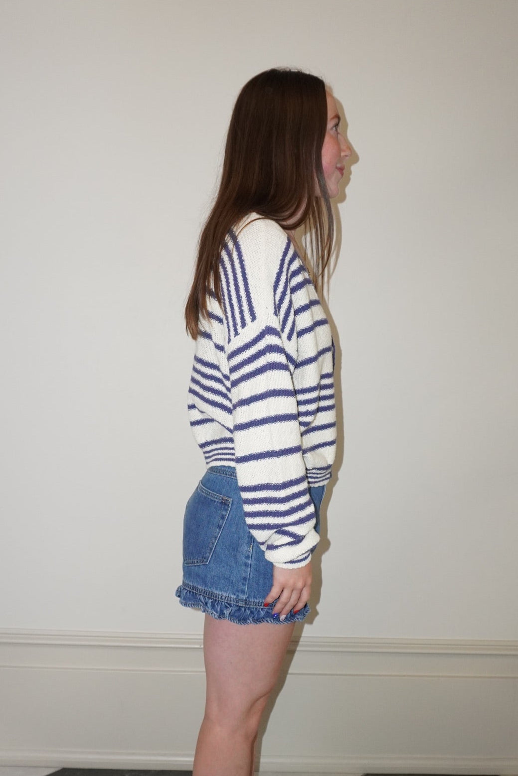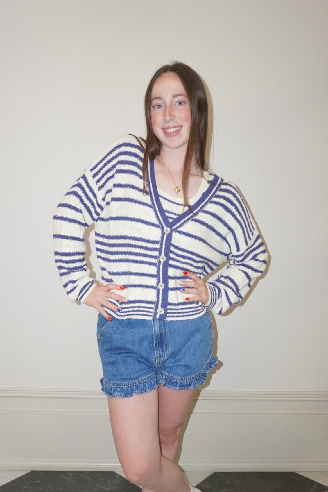 You're gonna want to sea this one up close. The Sea-ing Stripes Set pairs a slouchy, striped cardigan with its matching tank for a look that’s equal parts coastal and cool-girl chic. Featuring bold blue and cream stripes, a flattering v-neckline, and oversized buttons, this cardi brings major laid-back luxury vibes. Throw it on with the matching tank for an effortlessly coordinated moment, or mix and match to ride the wave your own way. Whether you're beach-bound or just brunching, this set is your ticket to looking breezy without even trying!