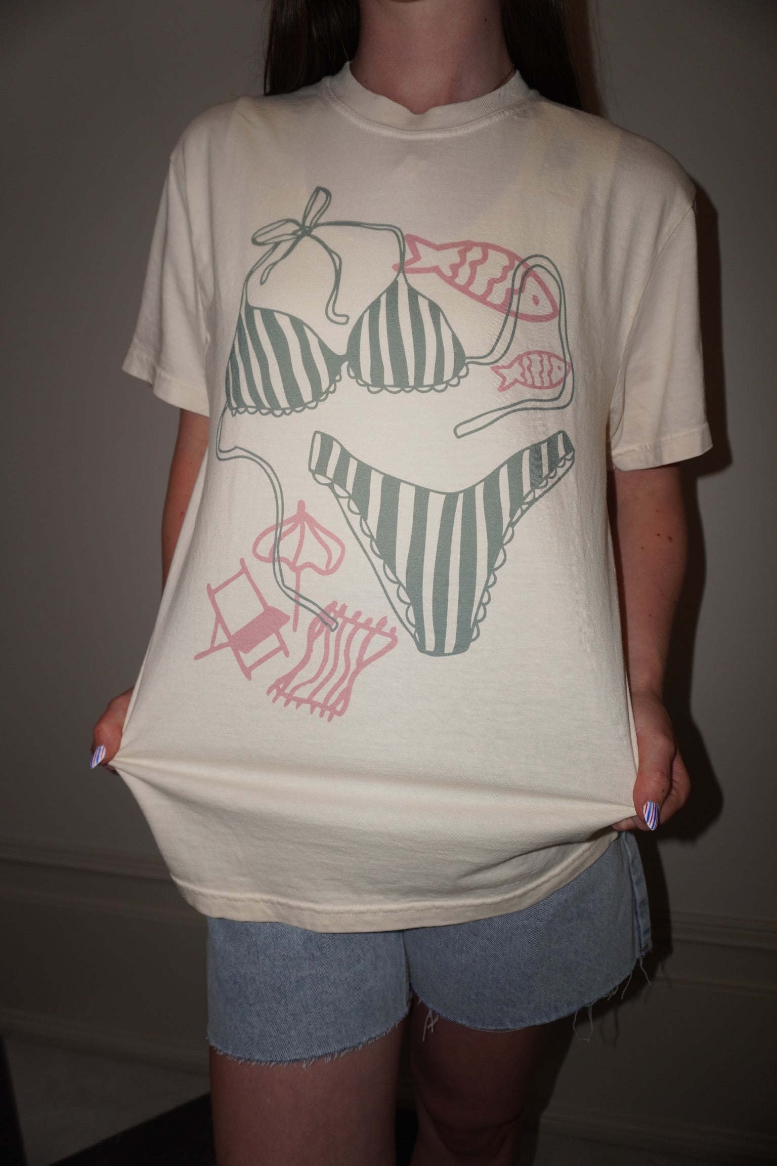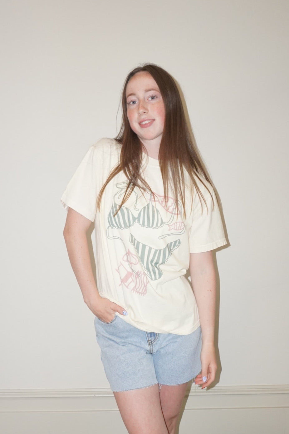 Catch you on the coast! The Sea You Soon Tee is the kind of graphic tee that says "vacation mode:on" so you don't have to. With a playful front and back design, featuring basically all vacay essentials, this tee brings all the beachy vibes—even if you're landlocked. Slightly oversized and soft enough to live in, this one’s perfect for throwing on after a beach dip or when you’re just dreaming of one. Ready to sea-nic route its way into your closet!