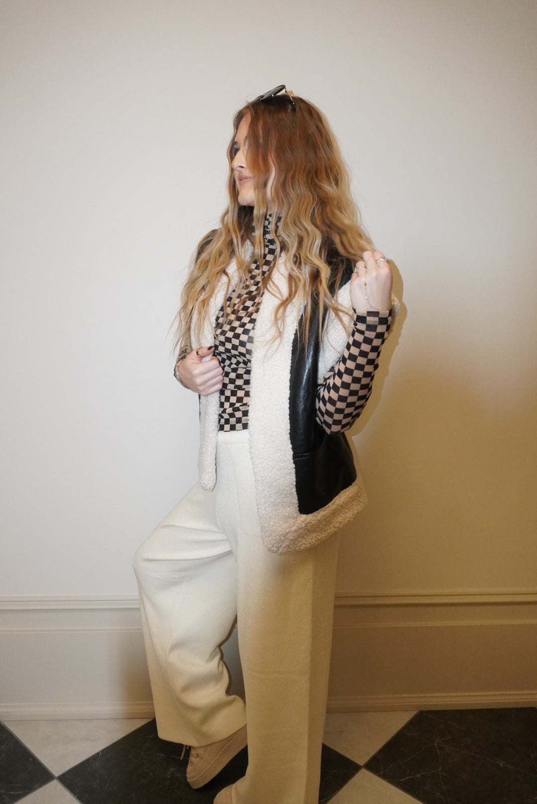 Tough on the outside, cozy on the inside—just like your dream jacket, but make it a vest. The Visiting Vail Oversized Faux leather beauty brings major cool-girl energy with its sleek finish, while the sherpa lining and trim keep things soft, warm, and undeniably chic. Perfect for layering over chunky knits, hoodies, or even a simple tee when you’re feeling bold. Whether you're channeling effortless street style or just trying to stay cozy without the bulk, this vest is here to prove that *warmth and edge* can, in fact, coexist.
